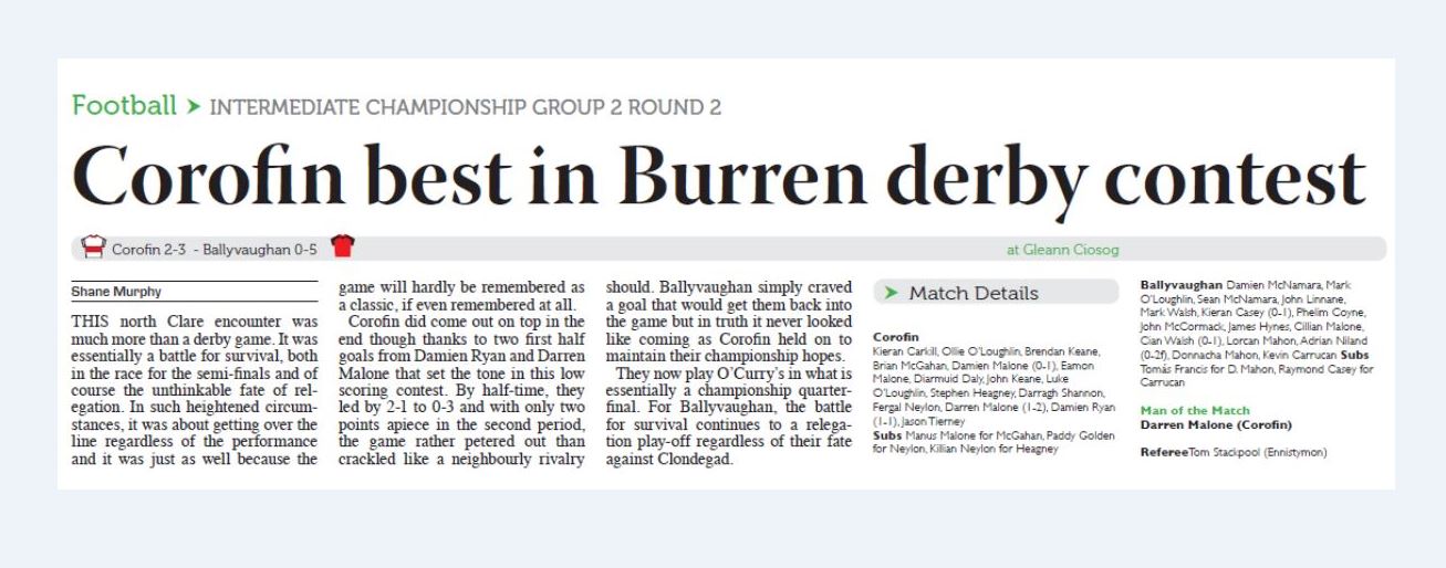 Ballyvaughan / Fanore GAA Club Fixtures for 2014 Gearldine League Division 4 Football League 2014